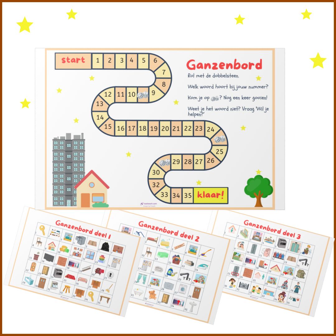 - Ganzenbord spel. Spelbord met 3 speelkaarten.
